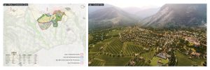The process began with an extensive on-site reconnaissance mission, combining the expertise of architects, planners, infrastructure and conservation specialists. Over a week of fieldwork, the team documented surviving structures, street networks, and natural features; met with local and municipal representatives; and commissioned high-resolution drone mapping and 3D terrain models. This data formed the foundation for a context-responsive design, rooted in both the physical and socio-cultural realities of each settlement.