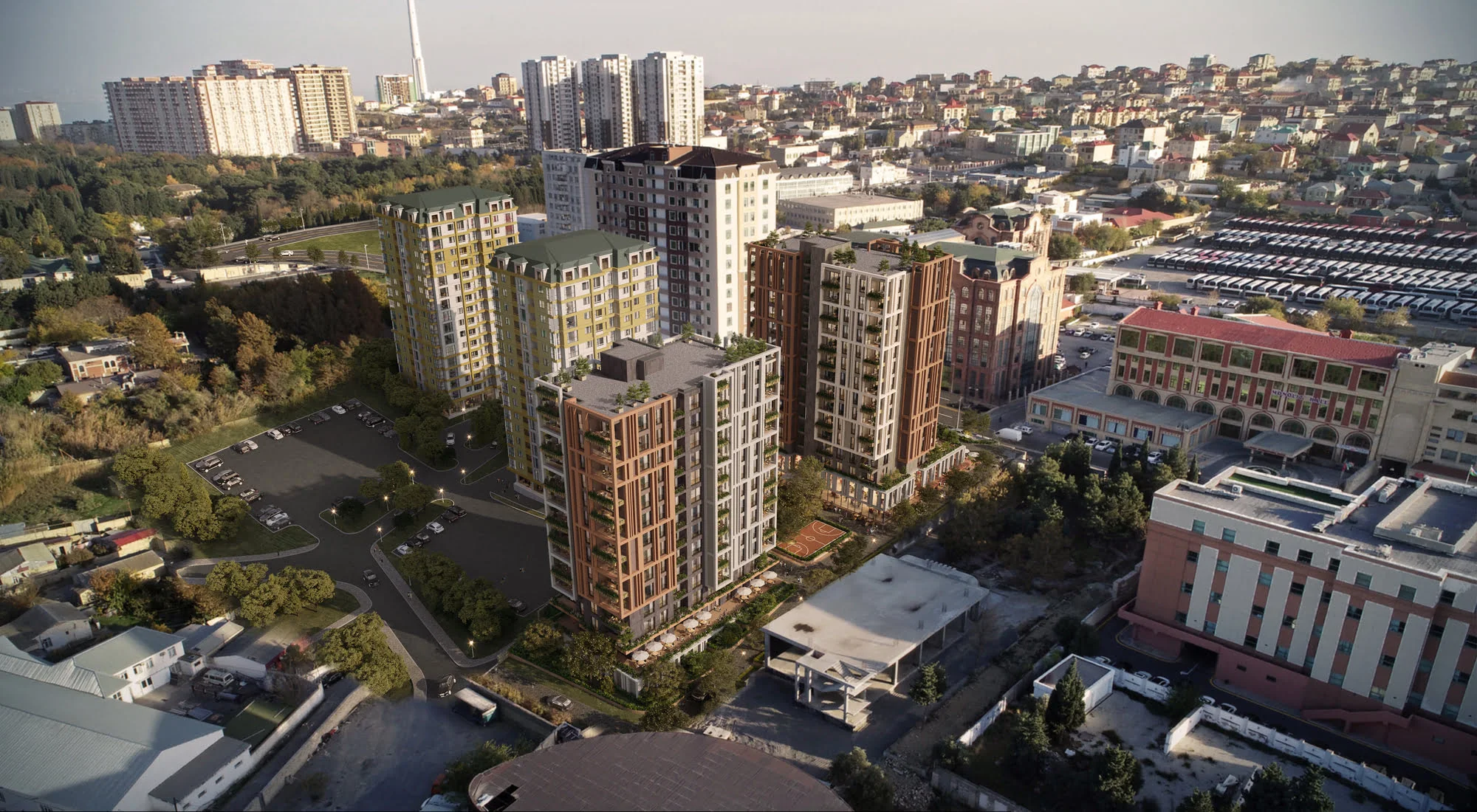 Located northeast of central Baku, the Badamdar Project introduces a refined mixed-use typology shaped by landscape, topography, and connectivity. With direct access to major arteries such as Badamdar Highway and Mikail Mushfig Street, only 33 km from Heydar Aliyev Airport the site occupies a central node in Baku’s expanding residential periphery. Its proximity to the Builders Metro Station ensures uninterrupted access to the city’s core, while its hillside position presents unique opportunities for orientation, privacy, and greenery.