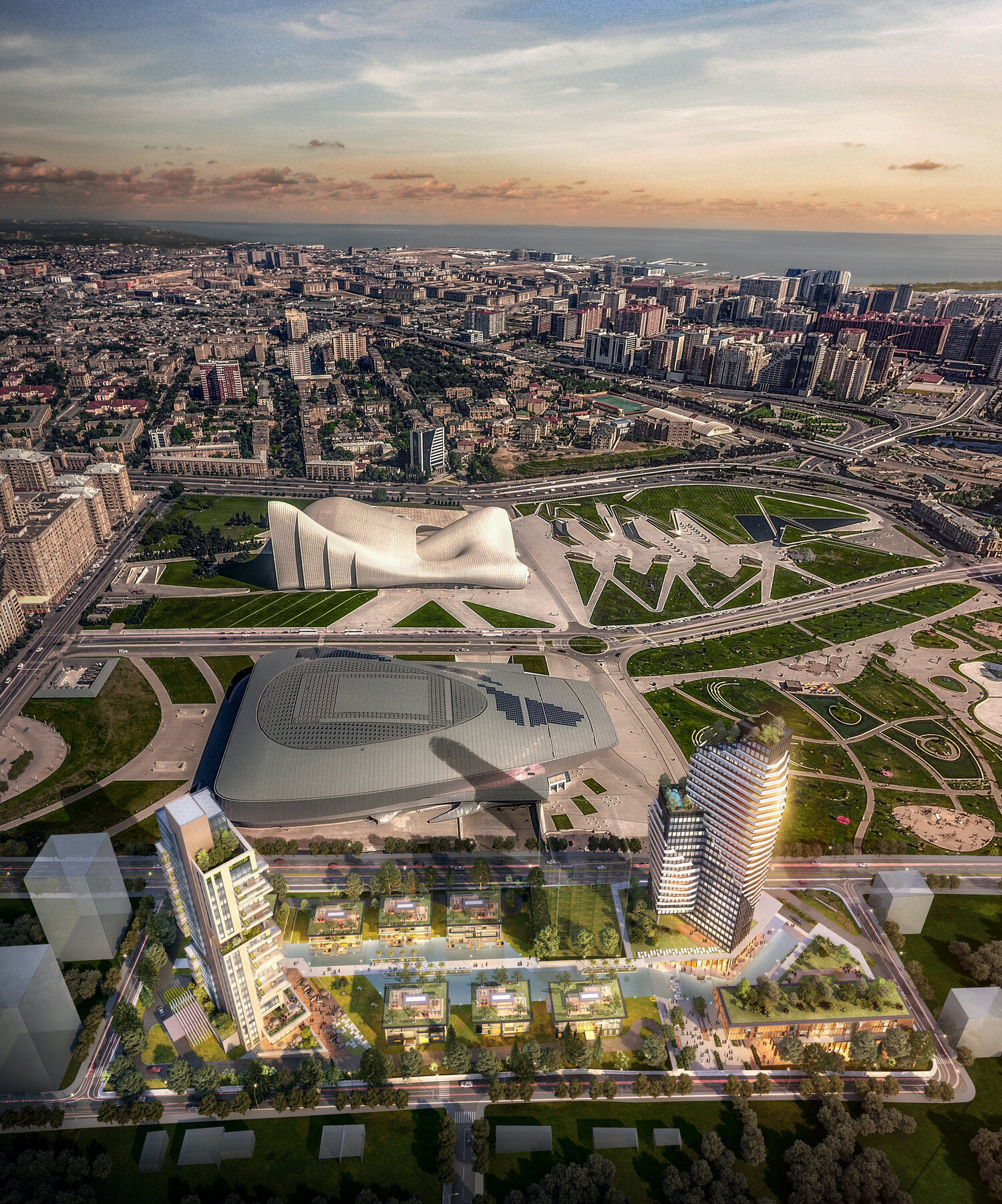 The project connects to Baku’s existing east-west green corridor, extending ecological continuity through a series of linear parks and water features. While enhancing the micro scale quality of life for residents, it simultaneously contributes to macro scale environmental resilience. The strong landscape narrative is reinforced by the integration of a water axis and vibrant open spaces.