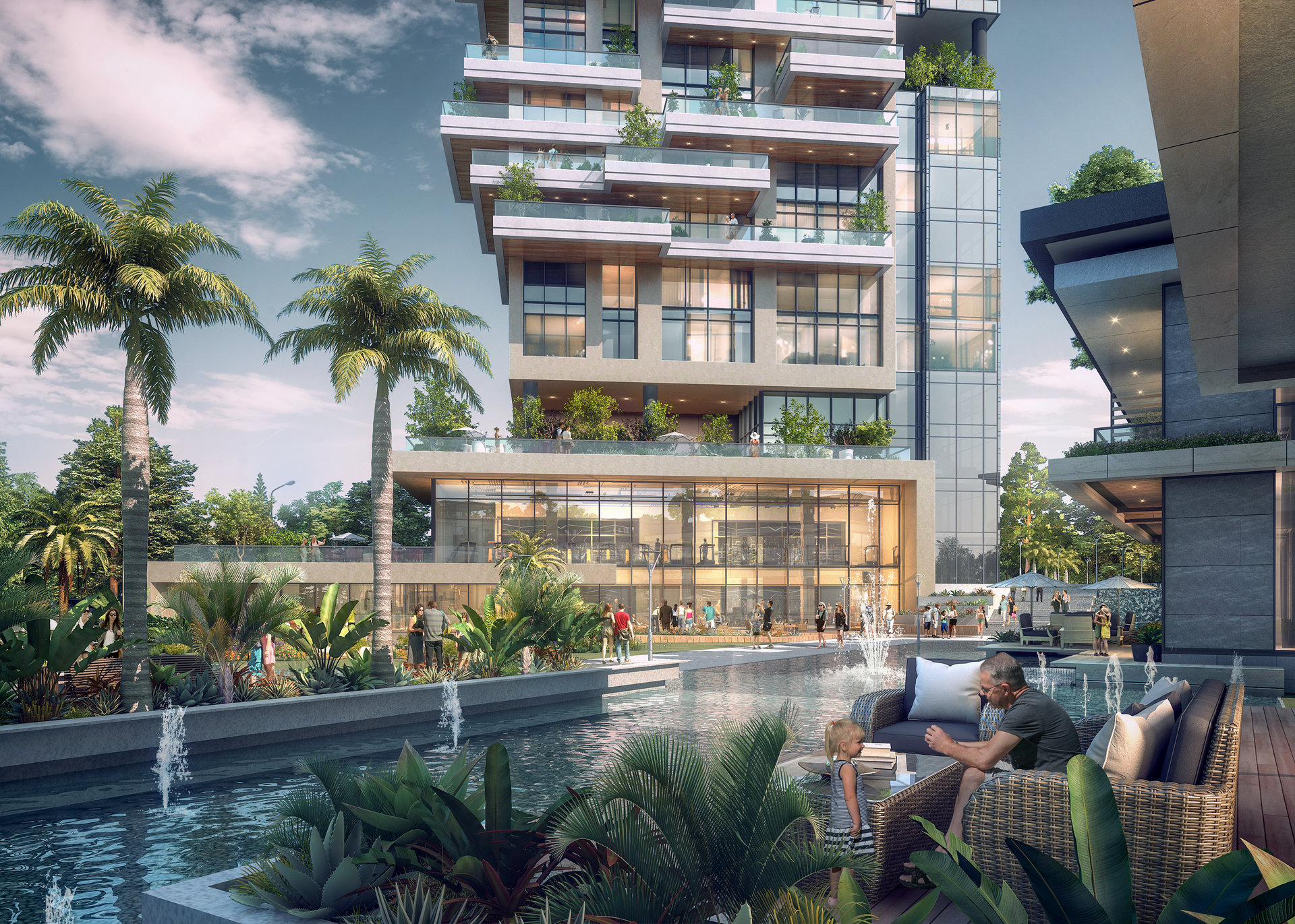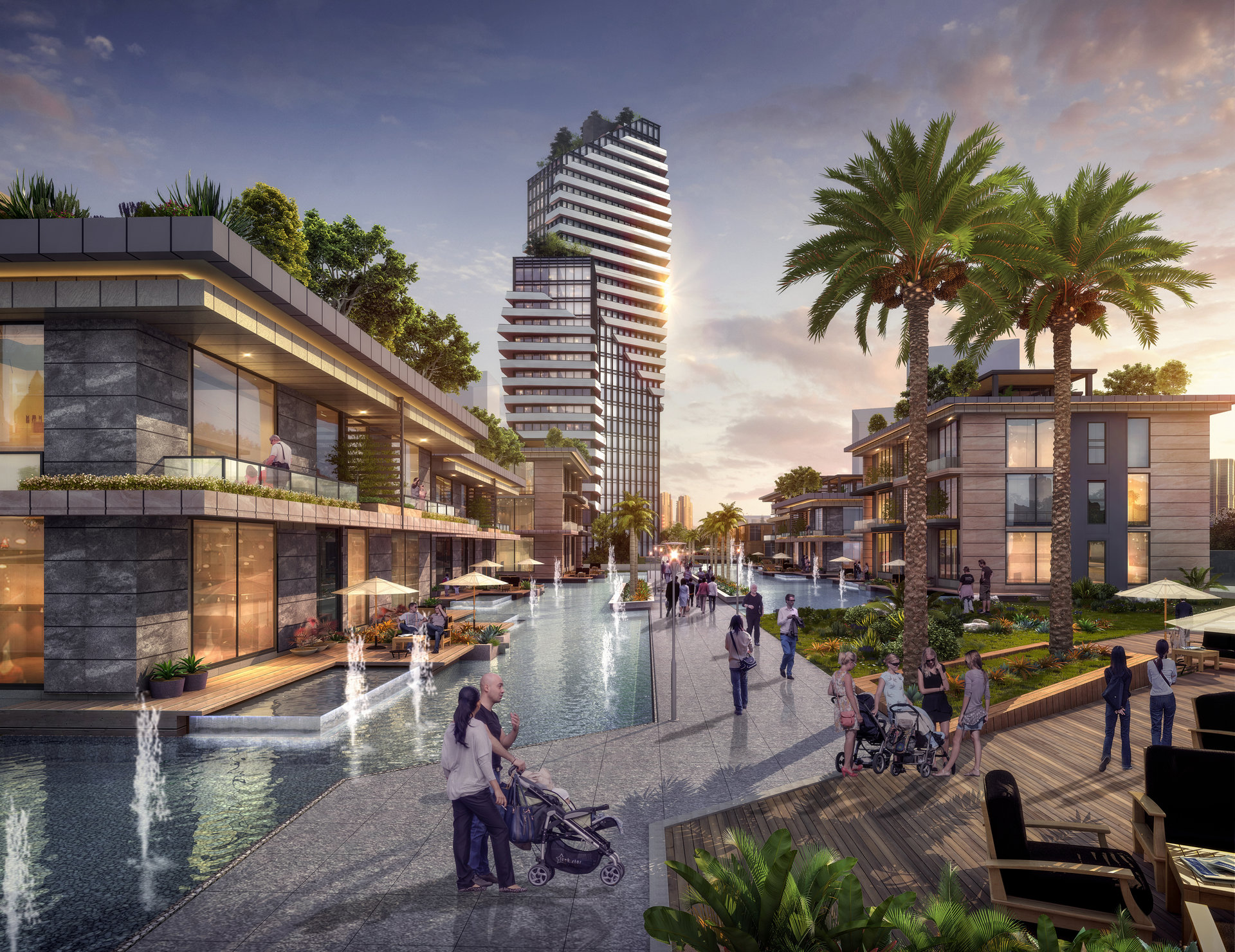 While the low-rise housing units are arranged along fluid, landscape infused paths, the iconic residence tower rises at the terminus of the central spine, fragmented into smaller volumes and articulated through sky gardens and asymmetric balconies. This approach creates a distinct identity without dominating the city’s silhouette.
