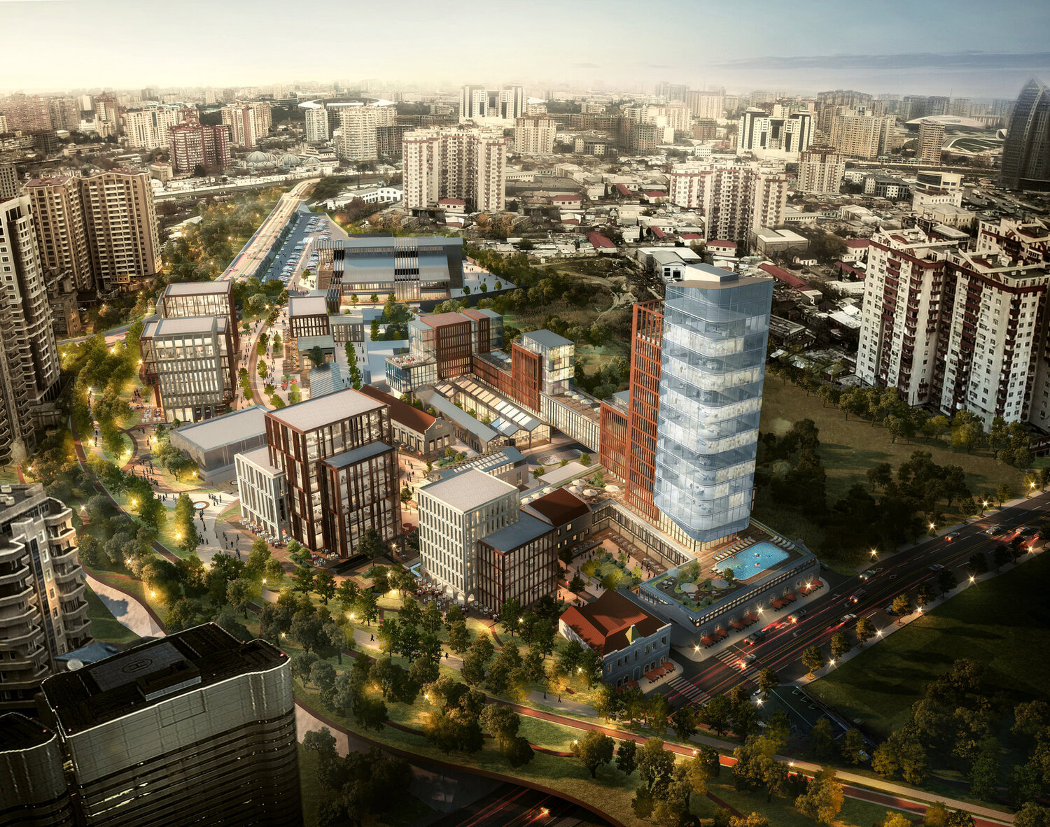 The architectural language incorporates materials such as Baku limestone, corten steel, glass, and wood enhancing both the spatial quality and contextual resonance of the development. The result is a compelling blend of contemporary design and historical continuity.