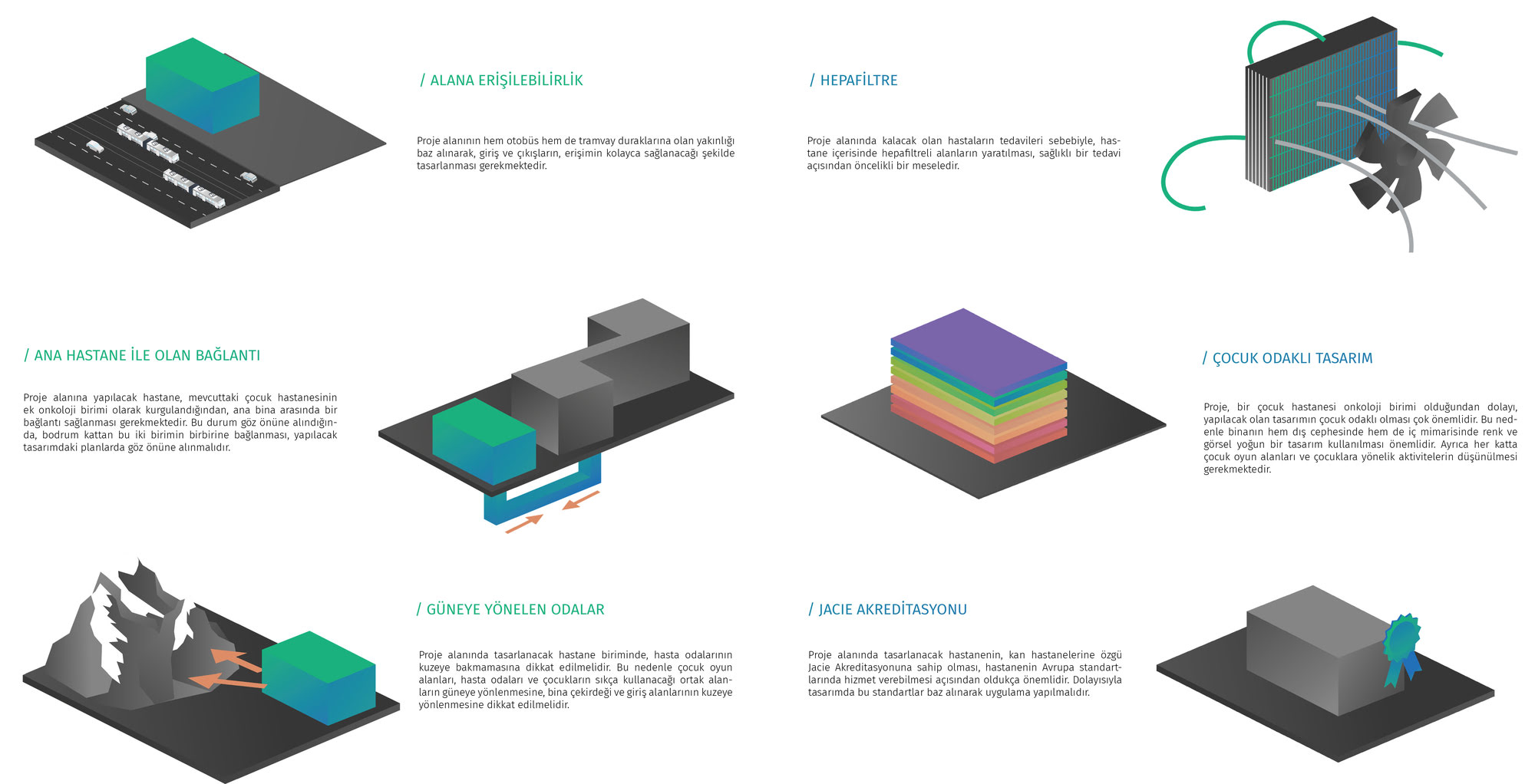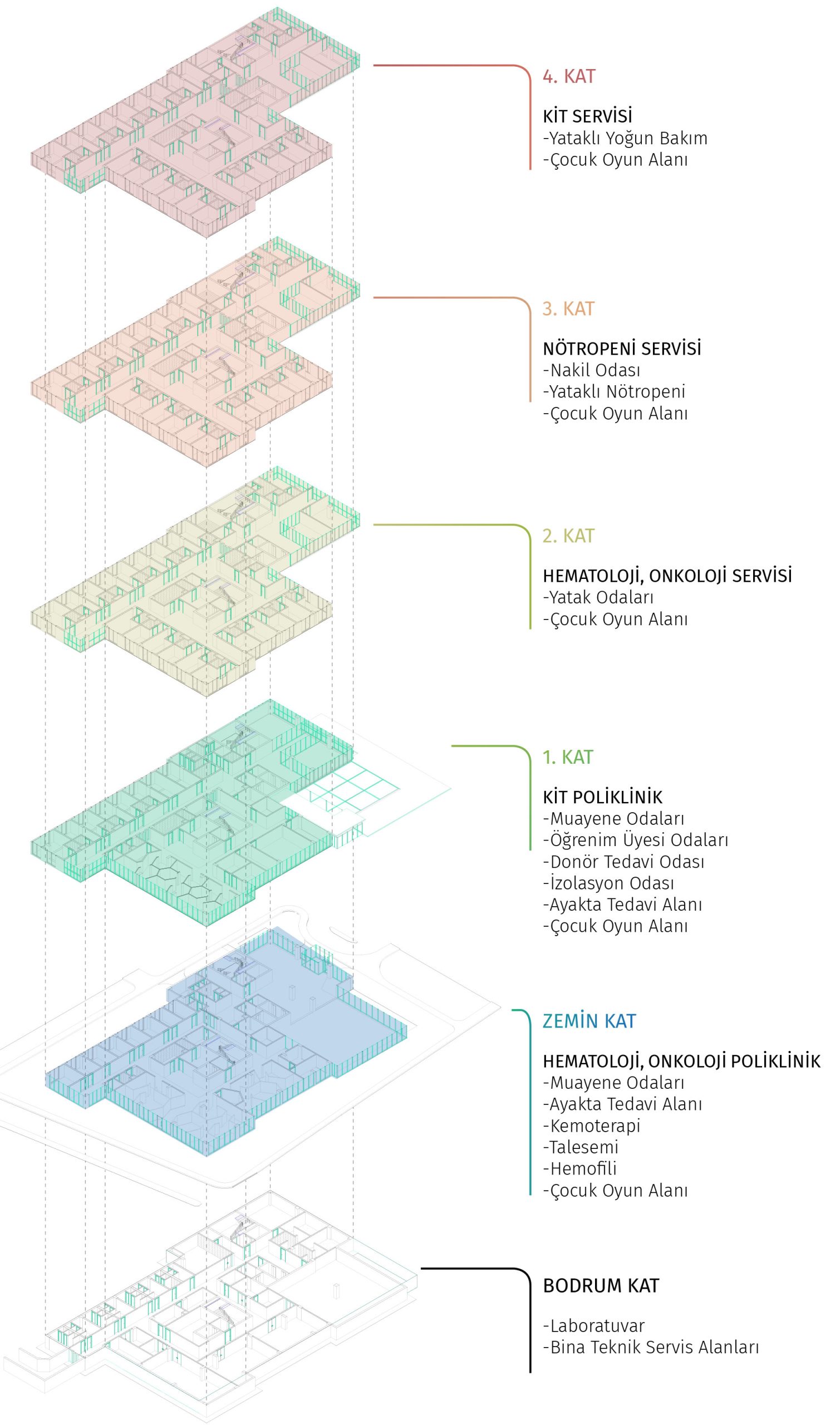 Erciyes Pediatric Hematology Oncology Hospital is a project of critical importance not only for the city of Kayseri but also for the national healthcare landscape of Türk,ye. Located within the premises of Erciyes University Hospital and approximately four hours from the capital Ankara, the project responds to a vital gap in pediatric oncology care. While Kayseri has five hospitals equipped with oncology units, only two include pediatric oncology departments one of which is private, making it less accessible for the broader public. The new addition to the Erciyes University Hospital campus will thus serve as Türkiye’s largest and most comprehensive pediatric hematology and oncology facility, offering equitable and high quality care.