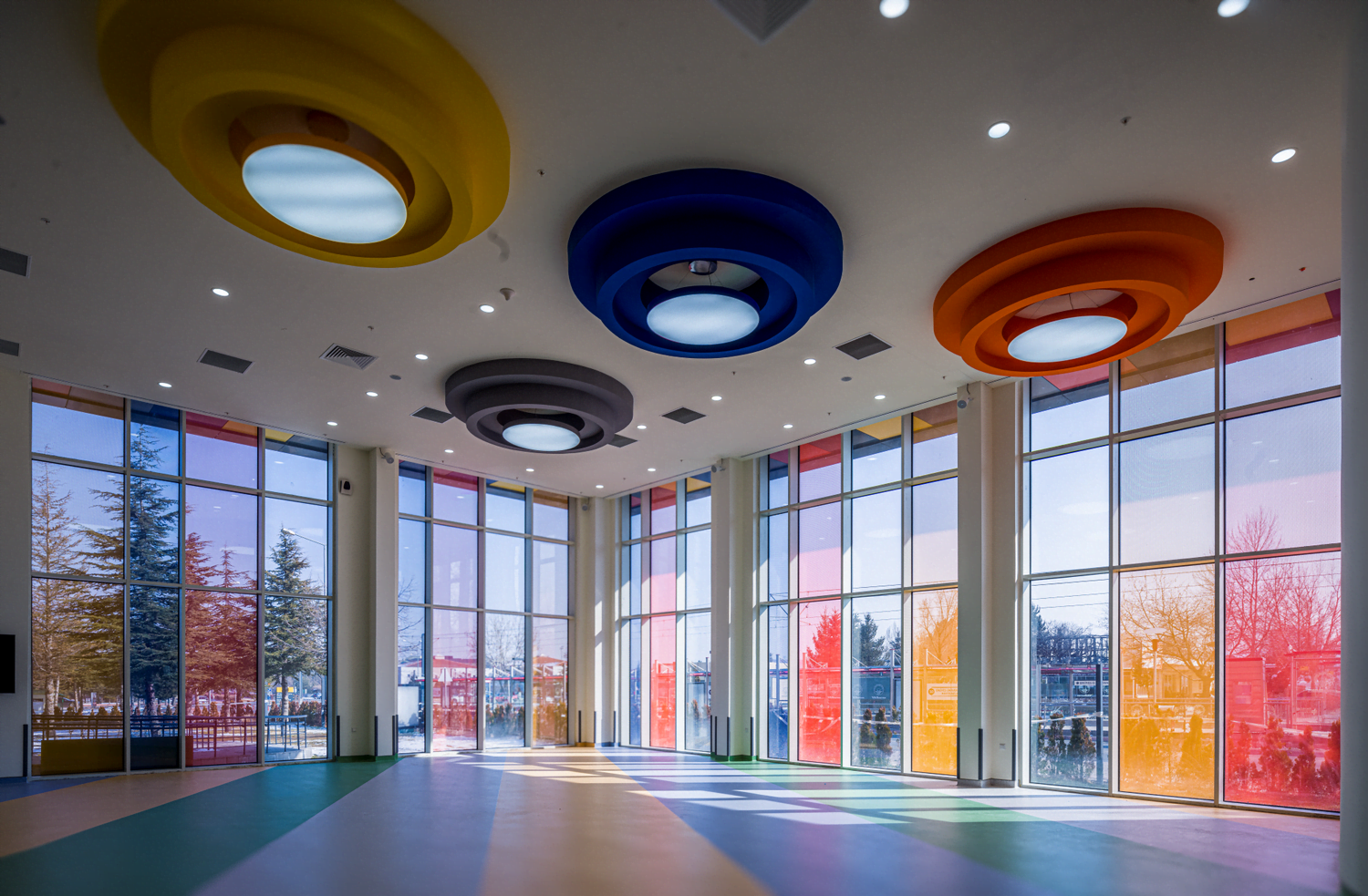 The hospital’s interior architecture is developed around the concepts of comfort and well-being. Each floor includes a centrally positioned nurse station to ensure optimal visibility and accessibility from all patient rooms, improving both safety and operational efficiency. Colorful, spacious interiors and integrated play areas on every floor are designed to alleviate the clinical feel of a hospital and bring joy and ease to young patients throughout their healing journey.