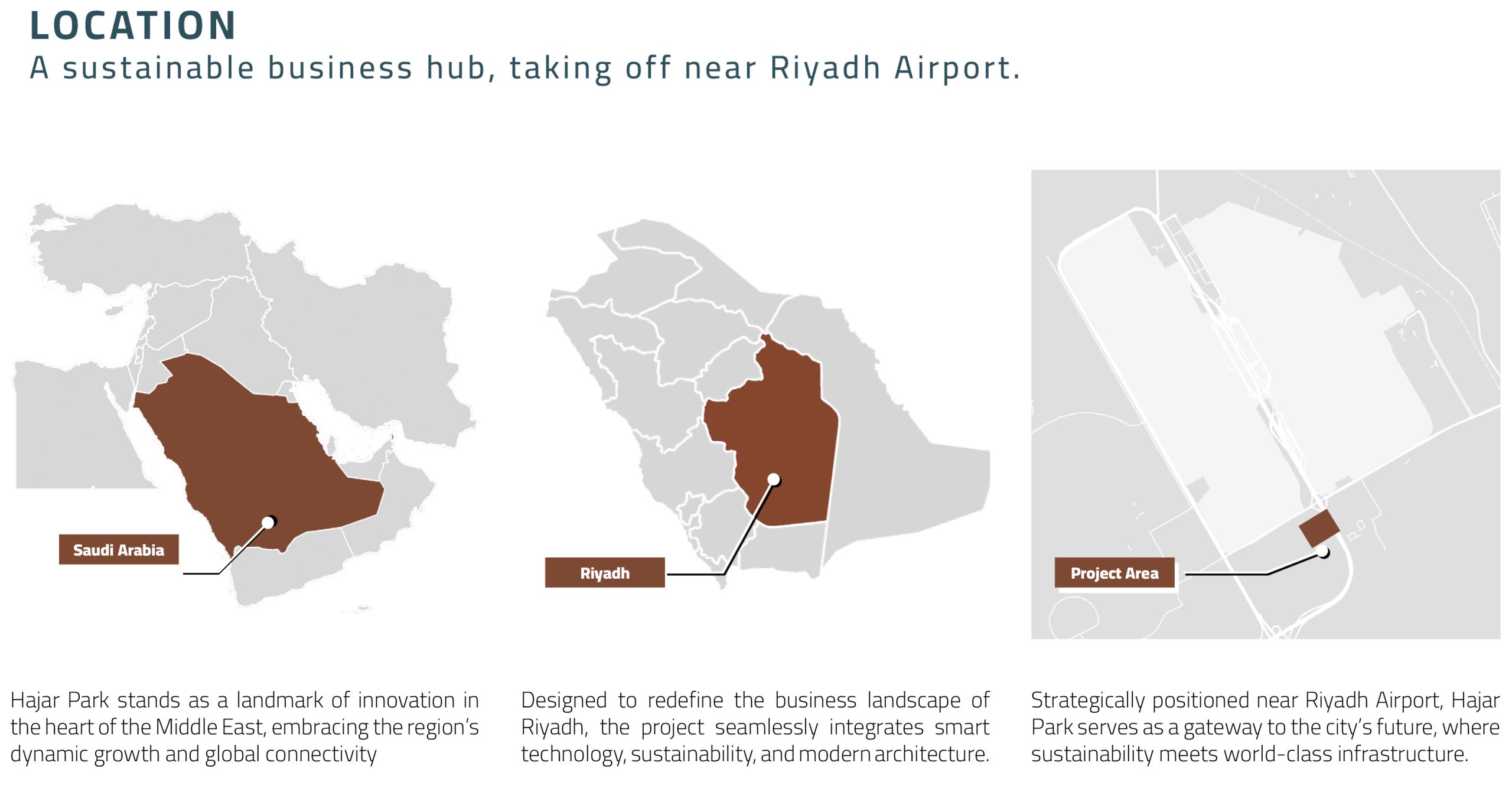 The adjacency of the site to key urban and infrastructural landmarks—Kingdom Centre, Al Faisaliah Tower, King Abdullah Park—positions Hajar Park not only as a business hub, but as a connective landmark within the greater Riyadh metropolitan framework.
