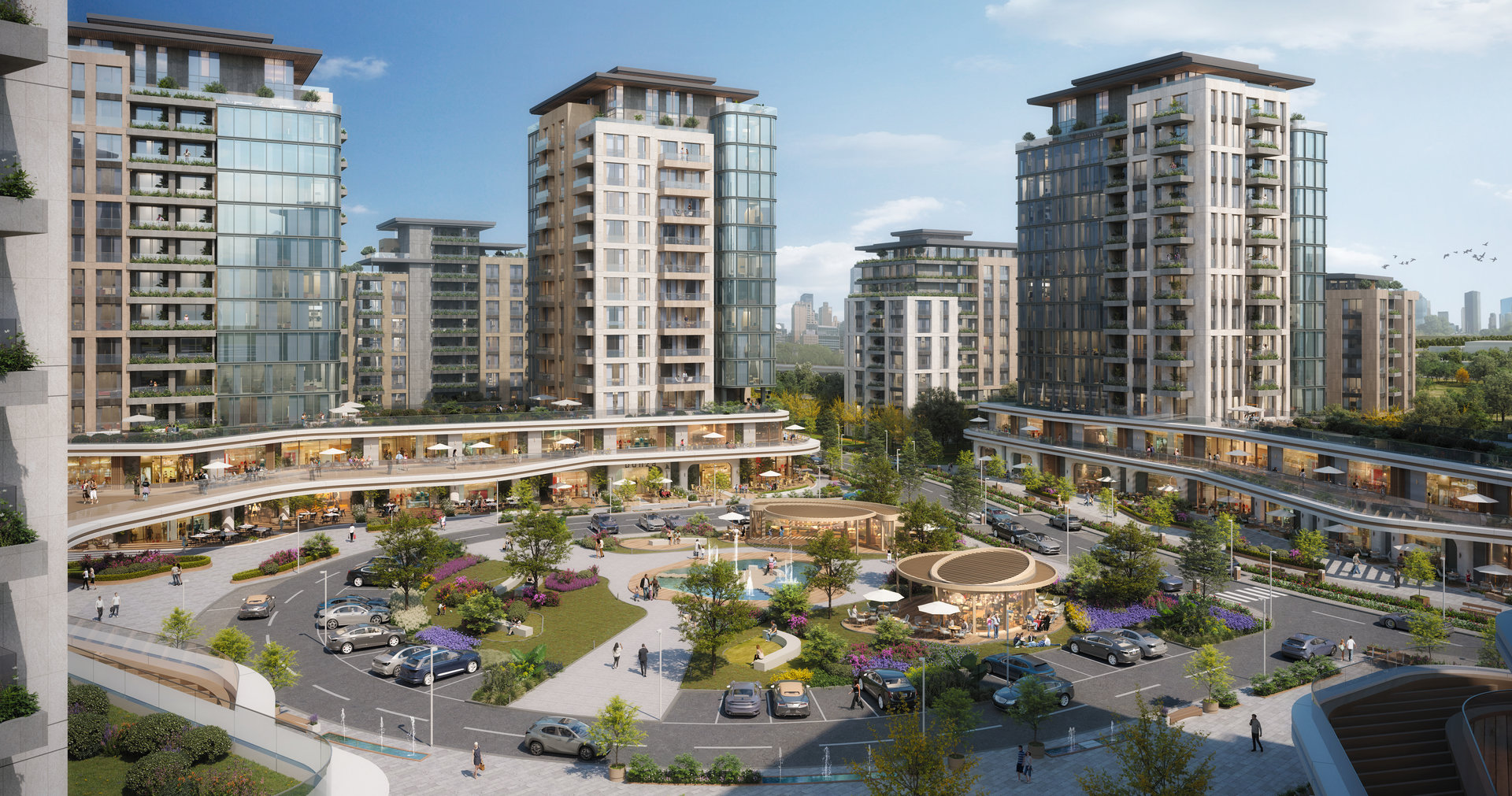 At the core of the masterplan lies a commercial spine along the boulevard, anchored by a public square that serves as a hub of interaction. Framed by cafes, restaurants, and retail spaces, the square is envisioned as both a destination and a civic meeting point.
