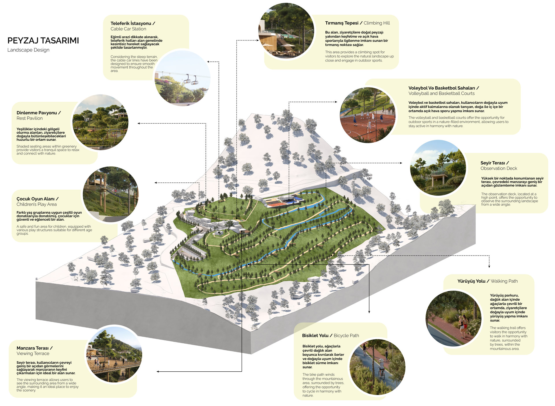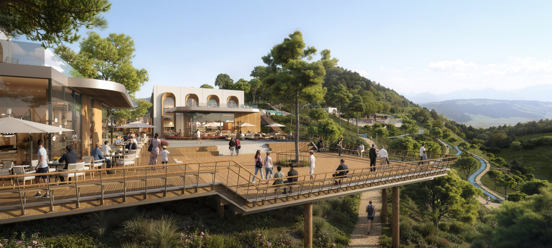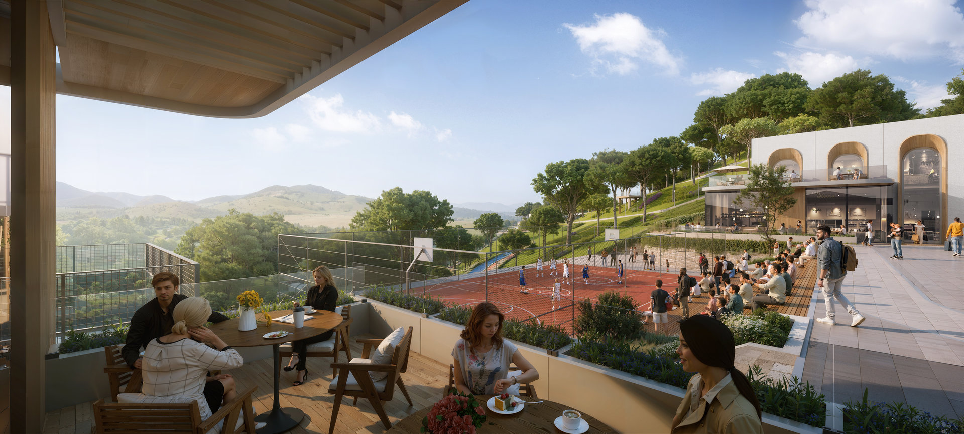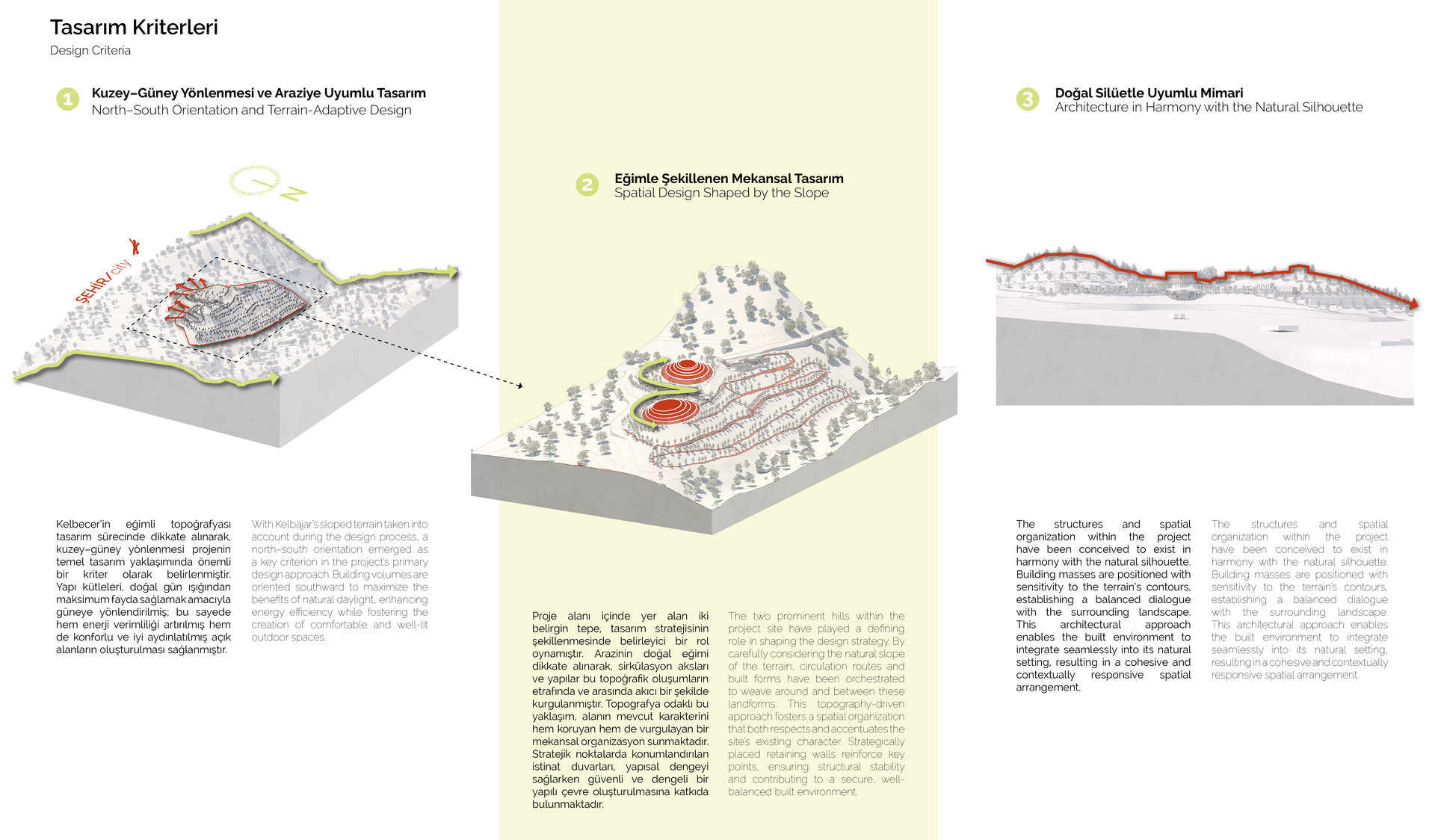 Building masses are arranged with sensitivity to the terrain, preserving the natural skyline and establishing a balanced relationship between architecture and landscape.