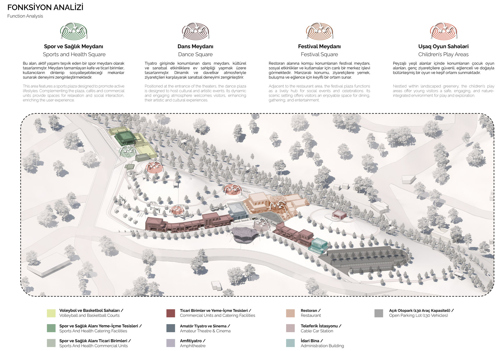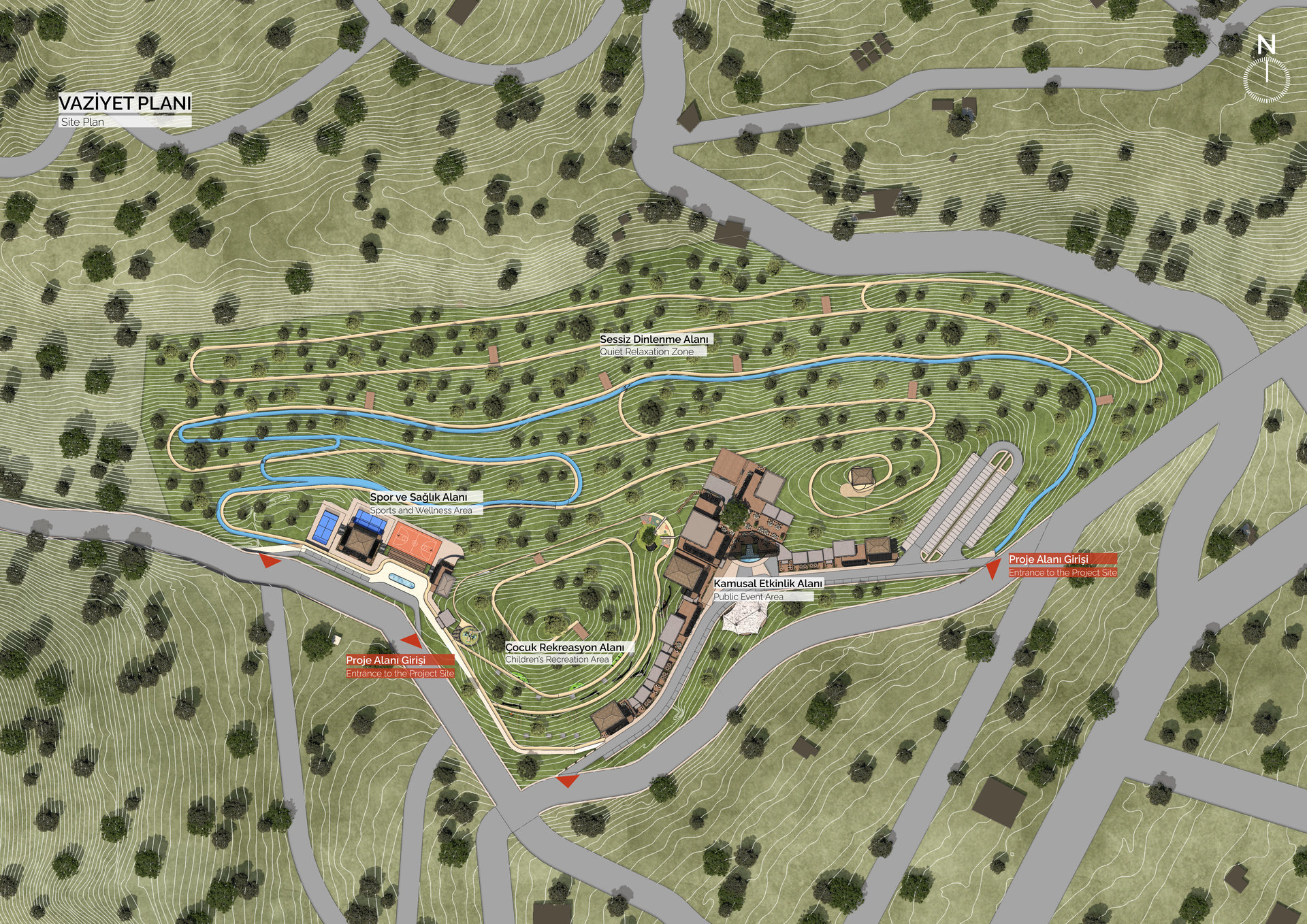 Situated in the mountainous Kalbajar region, the project site stands out with its exceptional natural landscape, rich biodiversity, and abundant water resources. Its strategic location, in proximity to significant regions such as Kalbajar’s neighboring districts, has gained further importance in recent years with the implementation of major infrastructure projects. The primary design goal is to establish a modern and functional public space while safeguarding the ecological integrity and cultural heritage of Kalbajar.