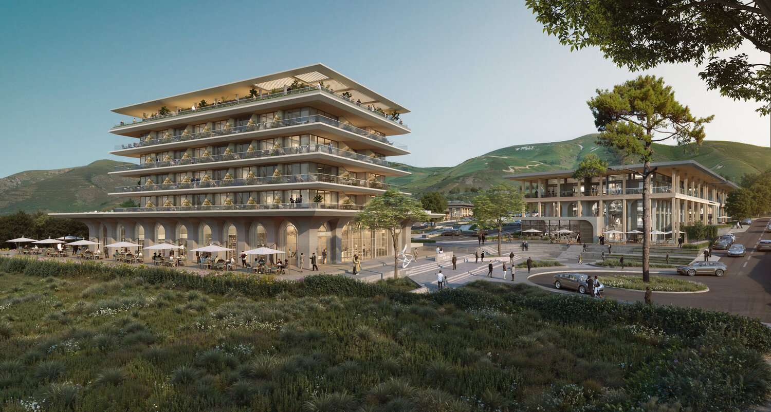 Kalbajar, located in Azerbaijan’s Karabakh region, is renowned for its breathtaking natural scenery, historical richness, and the healing waters of Istisu springs. Following the restoration of Azerbaijan’s territorial integrity in 2020, the city has entered a reconstruction phase and is emerging as one of Karabakh’s hidden gems. The project site is strategically positioned within the commercial zone of Kalbajar’s new master plan, surrounded by parks, residential quarters, a school zone, and in close proximity to a major urban park. This location enables strong commercial and social interactions, supporting the creation of a dynamic and livable urban environment.
