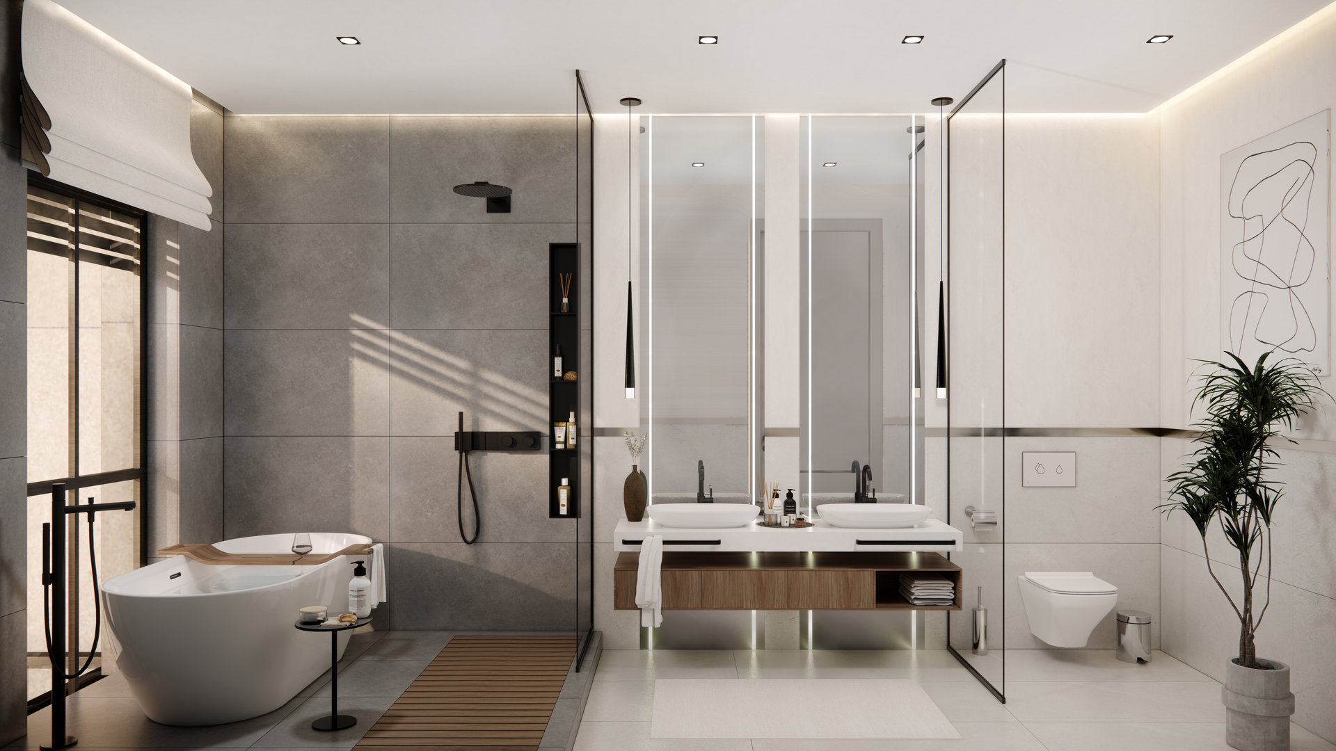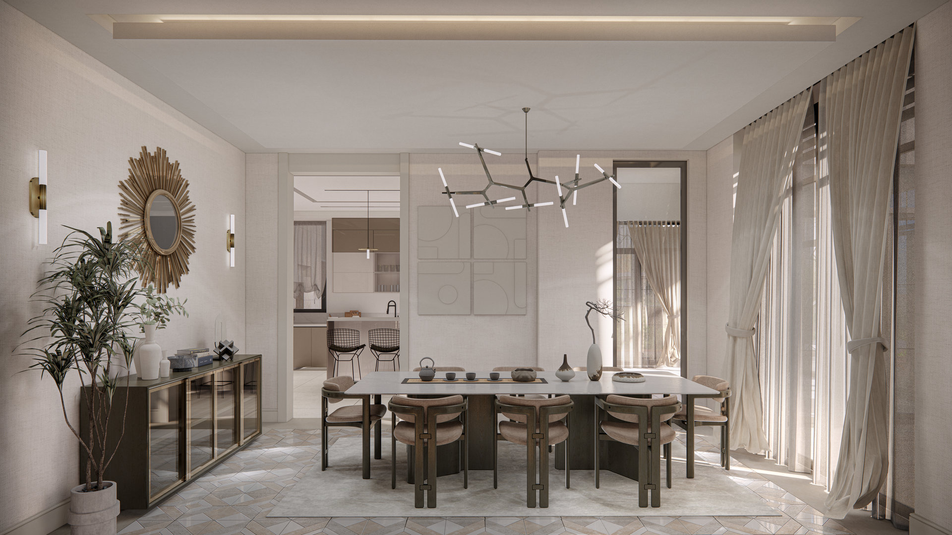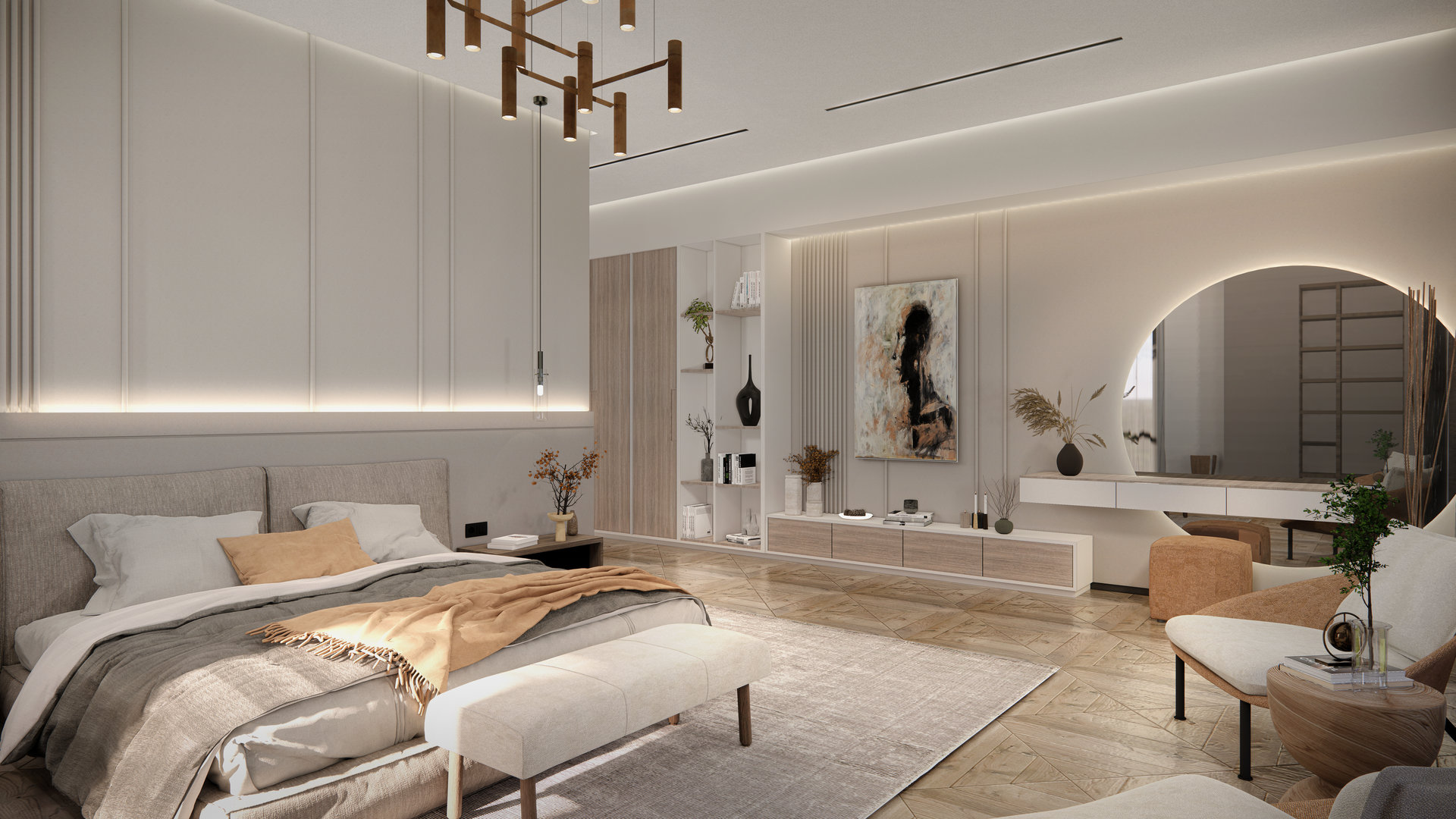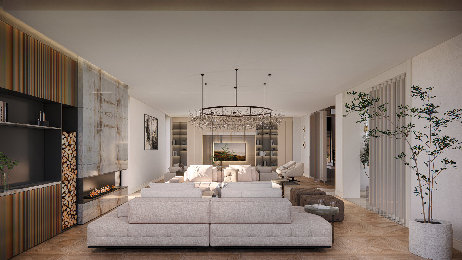 Carefully selected materials complement this approach, reinforcing a sense of harmony and completing the overall design vision.