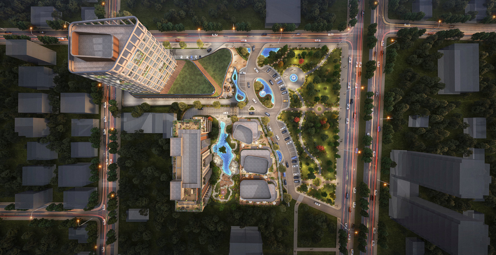 Landscape plays a central role in enriching both the visual appeal and functional quality of the project. Plantings, water features, pedestrian pathways, open plazas, and pocket parks are integrated to promote ecological sensitivity and user comfort. This strategy enhances both the liveability and the environmental sustainability of the development, contributing to a high quality urban experience.