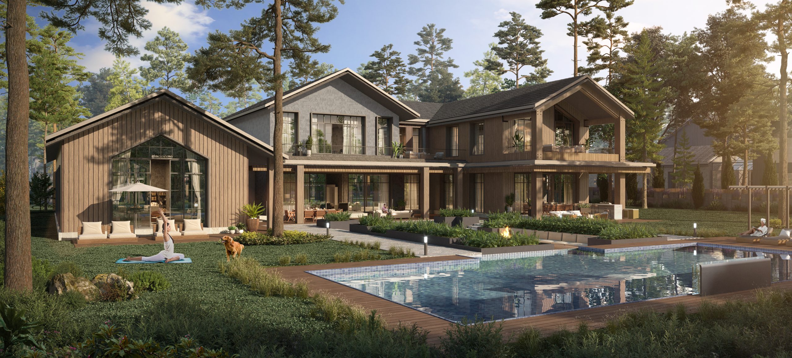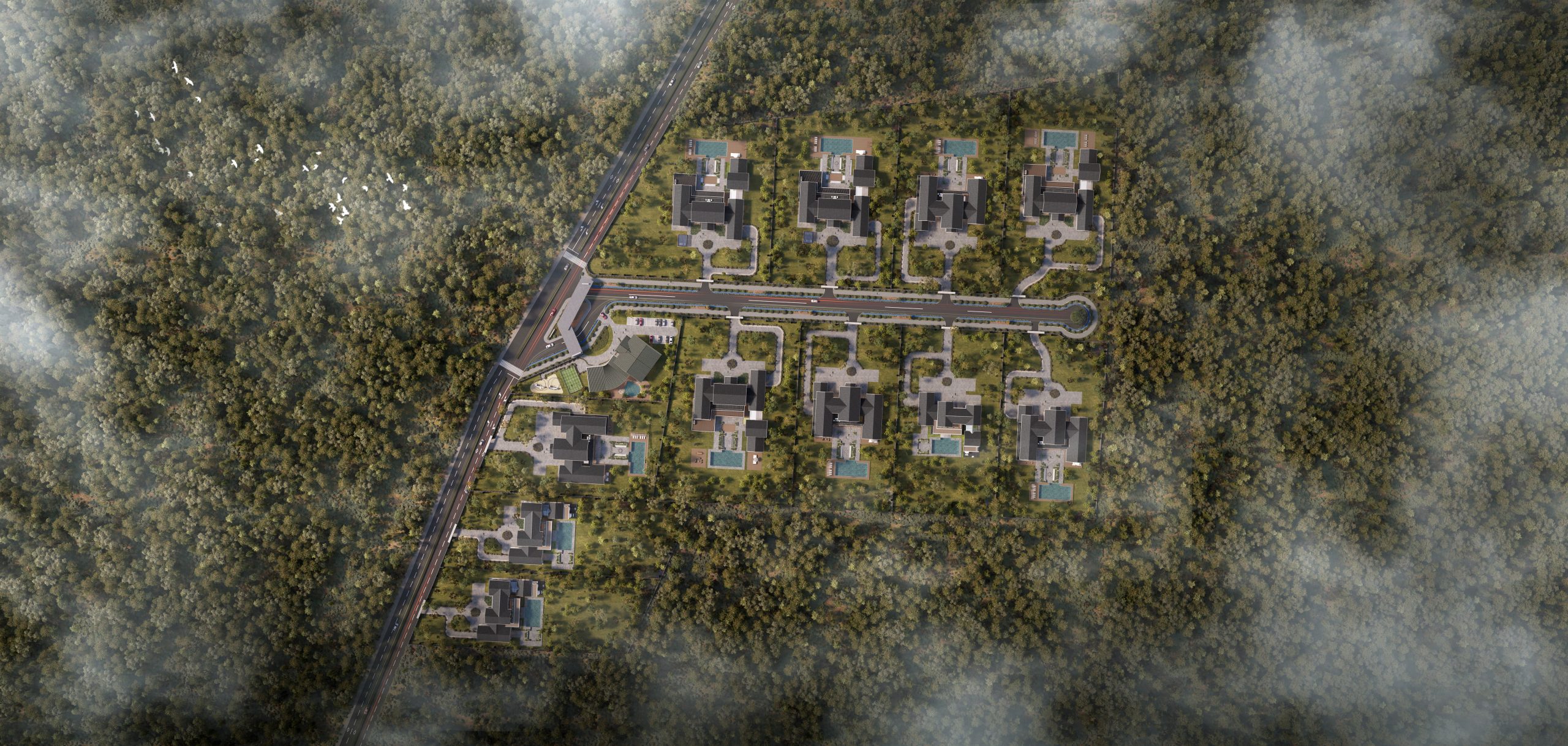 The master plan emphasizes privacy, exclusivity, and a high-quality lifestyle. Large portions of the development are dedicated to villa plots, each offering a generous share of private land. Four villa typologies ranging from 800 to 1,200 square meters are introduced, occupying half of their respective plots of 0.4 to 0.7 hectares, with the remainder reserved for gardens and landscaped areas. Each villa includes a private pool, spa, and garage, reinforcing the project’s focus on comfort and individuality. Social amenities are intentionally embedded within the villas, while a community center provides collective spaces such as lounges, sports facilities, and children’s playgrounds.