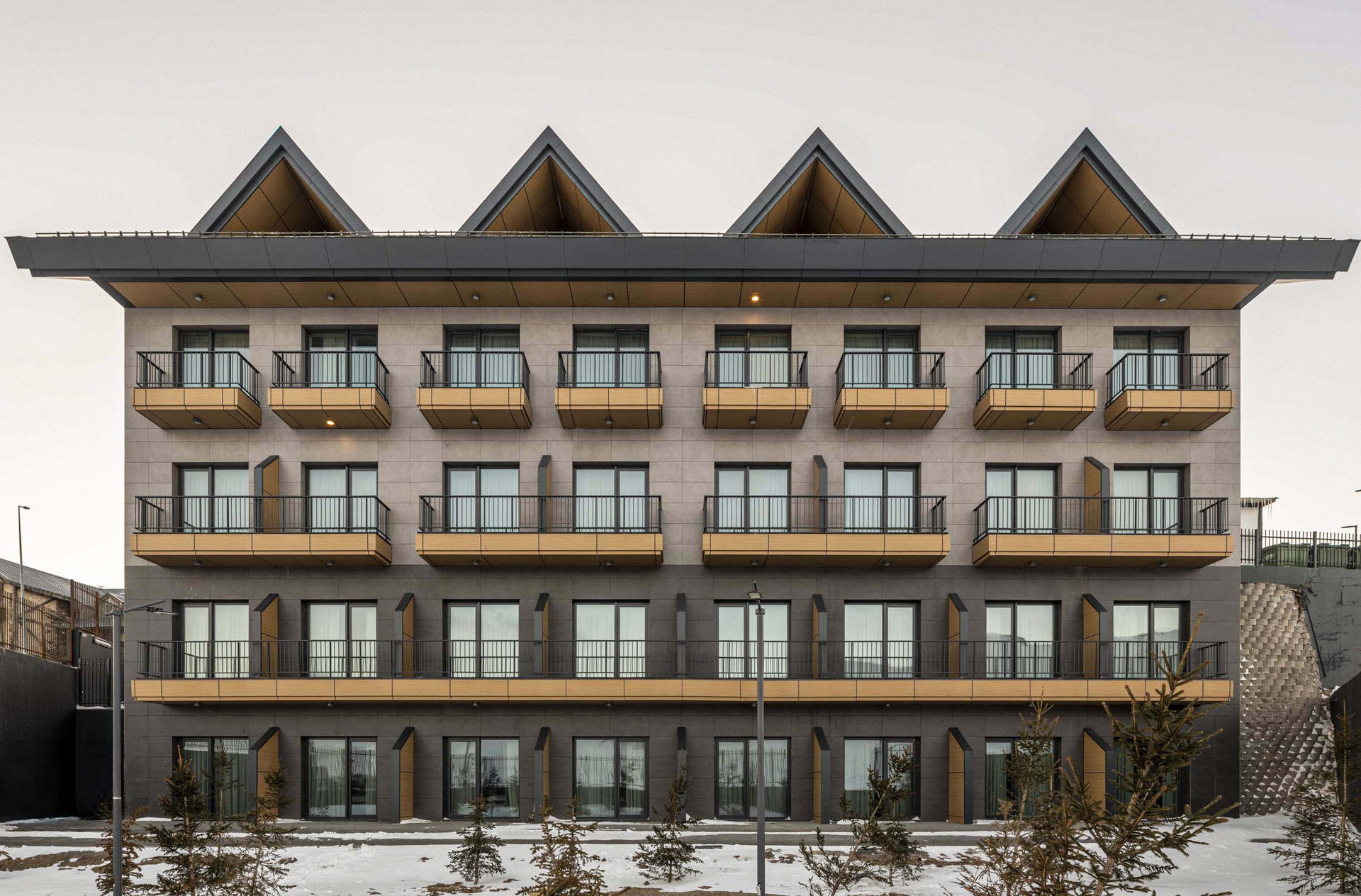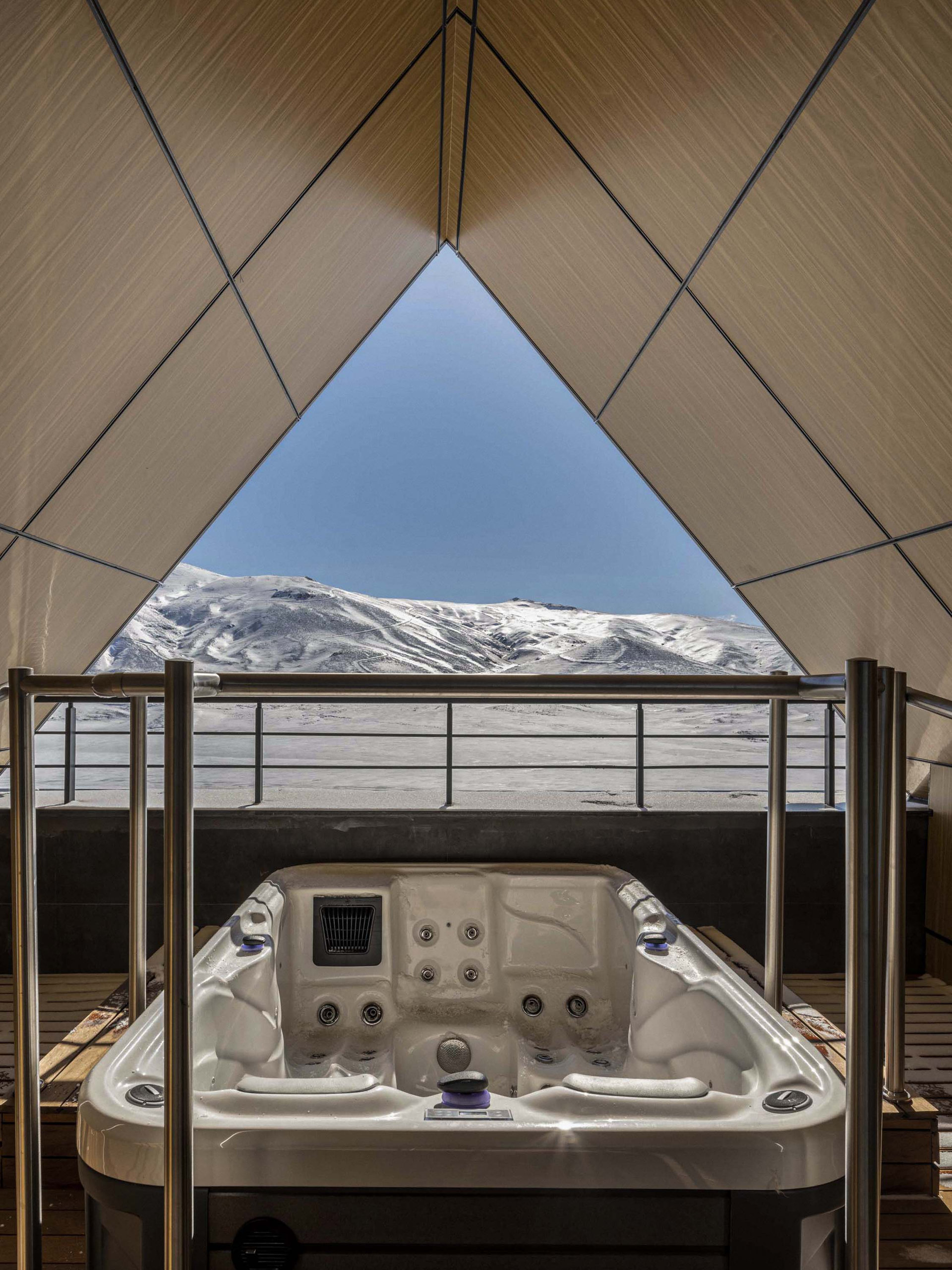 While integrated with Erciyes’ ski tourism infrastructure, the hotel is equally geared toward guests seeking restorative stays. The architectural language supports this dual function: it offers active interfaces near entry and ski access zones, while the lakeside-facing volumes shift toward quietude and repose. This balance transforms the hotel into a seasonal sanctuary, responsive to both adventure and introspection.
