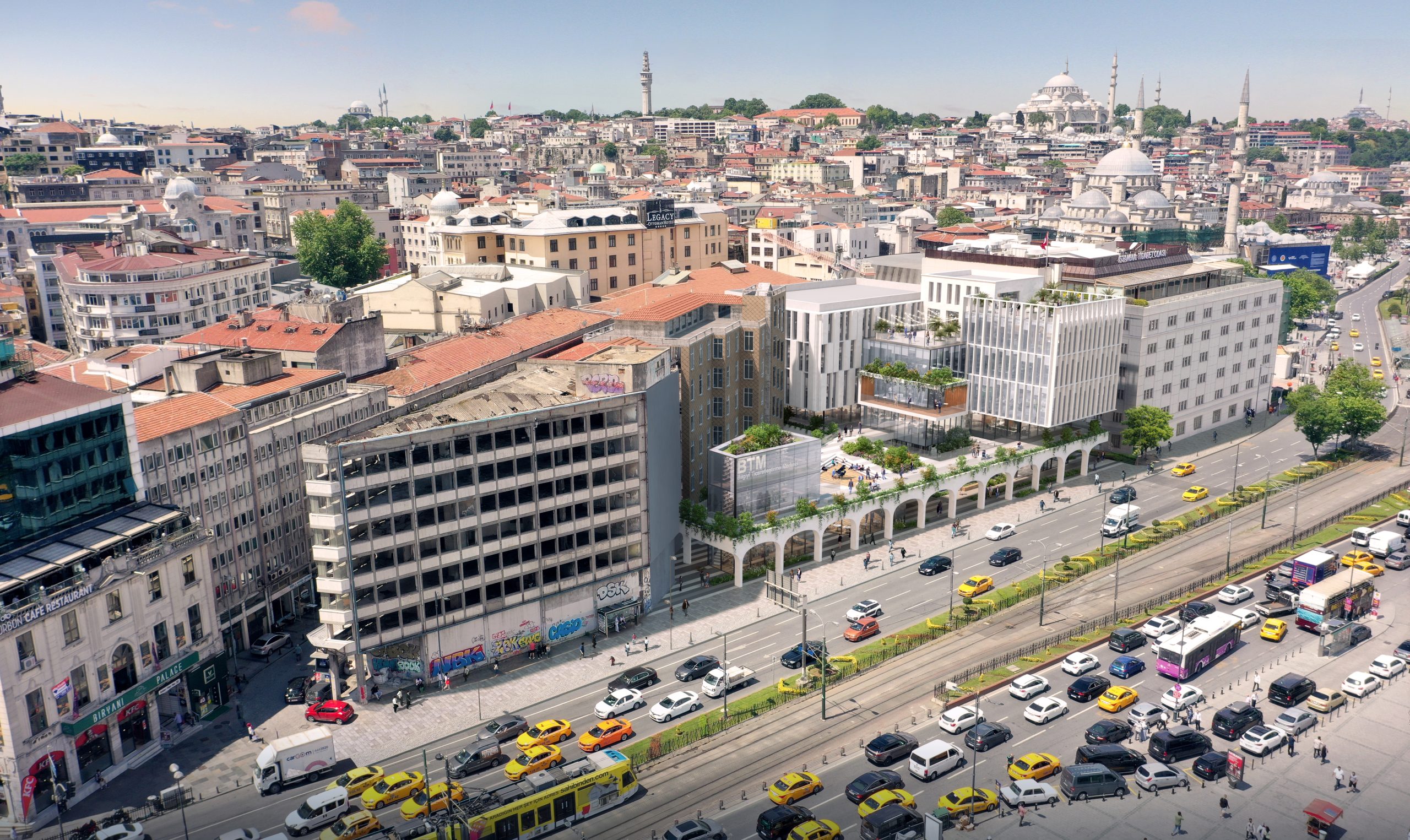 Situated in one of the most valuable zones of Istanbul’s Historic Peninsula, the BTM Building reinterprets contemporary innovation within the memory laden urban fabric. While acting as a hub for digital entrepreneurship and technological innovation, the project is also positioned to contribute to the cultural continuum of the city. Drawing architectural inspiration from the nearby Grand Bazaar, the design references both structural archetypes and spatial openness — such as arches, layered courtyards, and a vivid green palette — while proposing a modern typology.