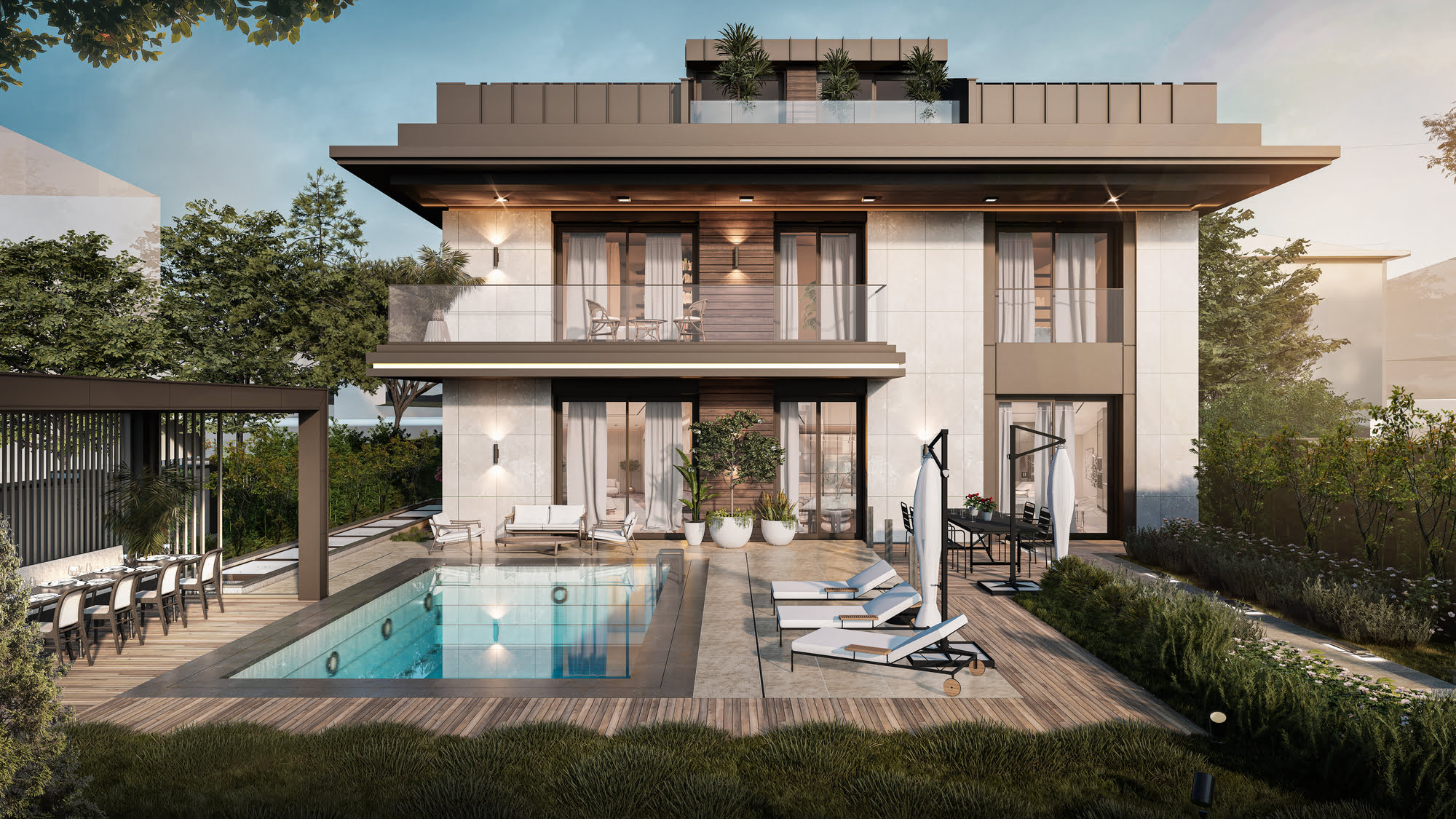 This villa project is conceived as a synthesis of spatial clarity, environmental awareness, and modern comfort. Strategically placed skylights allow natural light to permeate the interiors, while the main staircase is designed as a fluid vertical element within a gallery void enhancing continuity and spatial cohesion. The façade employs energy efficient and durable envelope systems, prioritizing thermal comfort and sustainability. Paired with advanced insulation techniques and smart building technologies, the villa offers a refined residential environment that meets contemporary ecological and lifestyle standards. The landscape design embraces space-optimizing solutions that enable green continuity even in compact outdoor areas. Functional and elegantly articulated open spaces form a seamless connection with the surrounding environment. Across all phases of the project, a consistent balance between function and architectural clarity has been maintained.