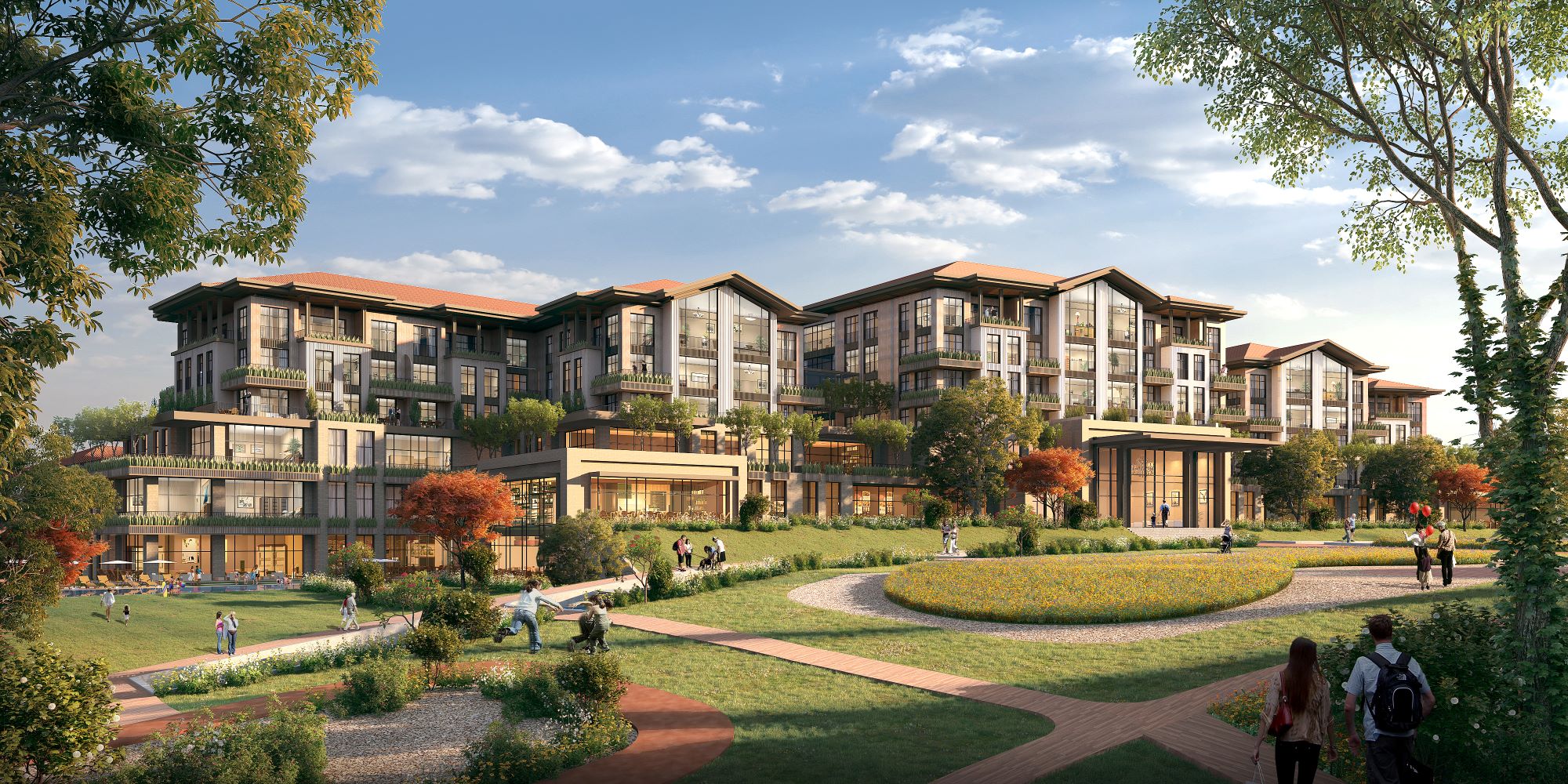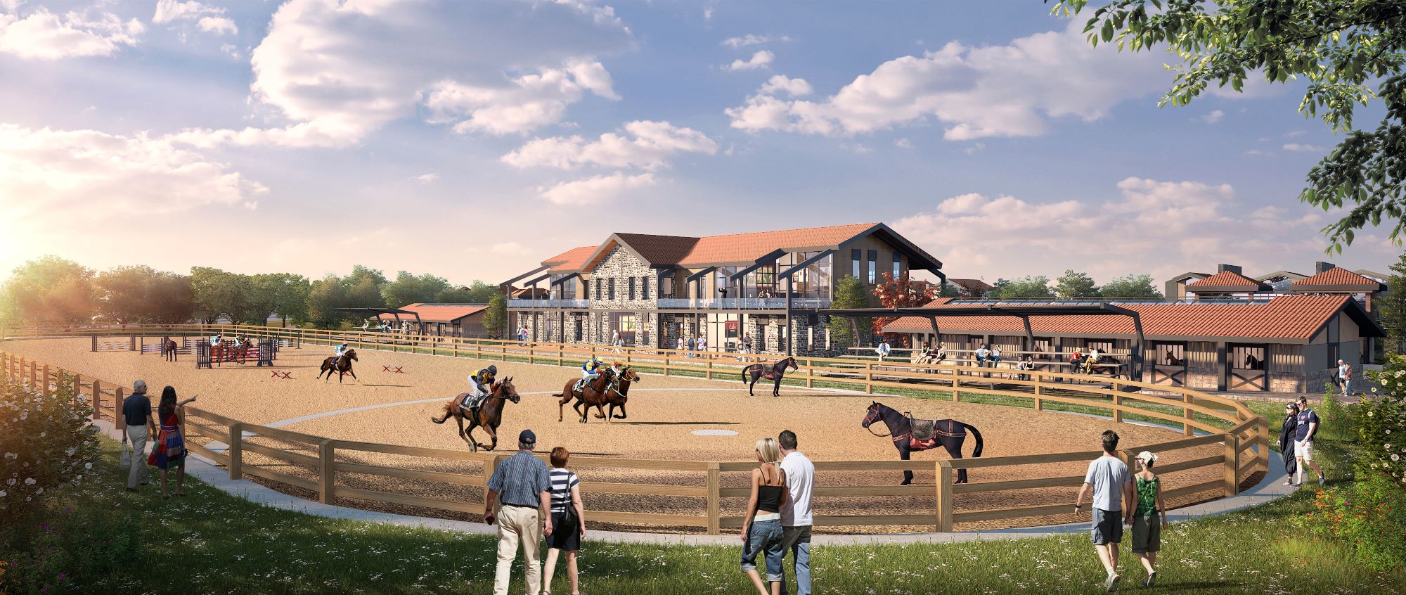 Projenin hem simgesel hem yönlendirici ögesi olan “At Kapısı (Horse Gate)”, bölgenin atlı spor geleneğine gönderme yapan mimari bir jest olarak yerleşkenin odak noktasında konumlanır. Alanın farklı noktalarına yerleştirilen özel deneyim alanları; yetişkin macera parkları, çocuk oyun alanları, sağlıklı ve gurme restoranlar, çamur banyoları, uyku terapisi odaları ve açık hava fitness parkurları gibi zihinsel ve fiziksel iyilik halini destekleyici programlarla kullanıcıya çok katmanlı bir yaşam deneyimi sunar.