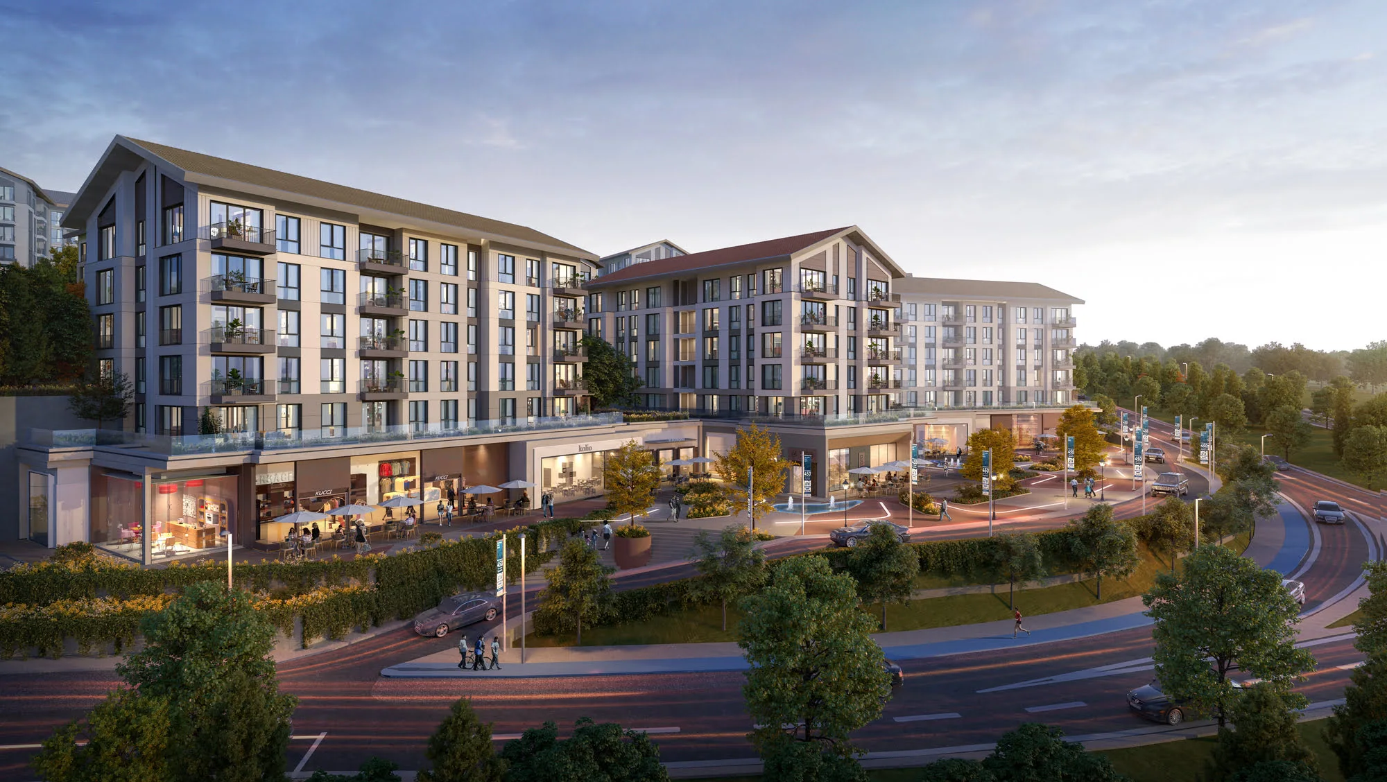 Kuzey ve güney sınırlarına yerleştirilen iki ticaret birimi; günlük ihtiyaçları karşılayacak, ulaşım sistemlerine entegre çözümler sunarak projeyi kendi içinde yeterli kılar.