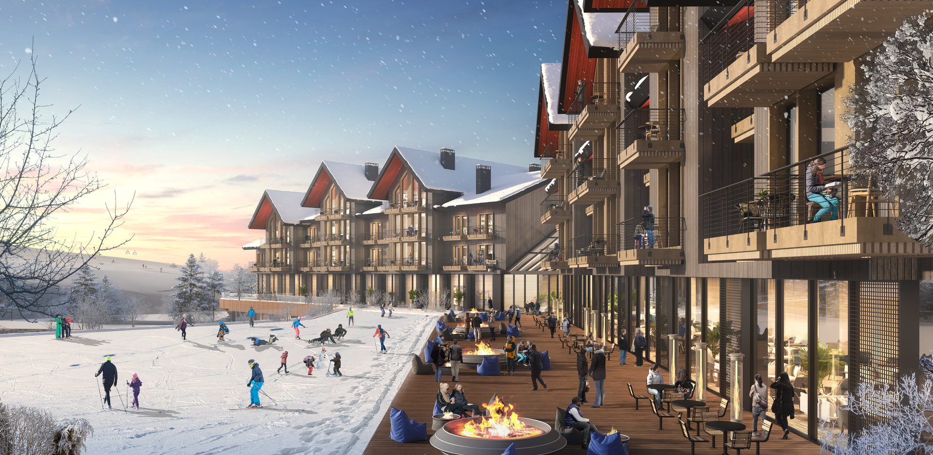 Ski-in/ski-out prensibiyle çalışan bu bağlantılar sayesinde, otel kullanıcıları pistlere doğrudan ulaşabilmekte; kayak ve ekipman alanları ile servis kurgusu bu erişimi destekleyecek şekilde mimari olarak organize edilmiştir. Böylece kayak deneyimi, yalnızca sportif bir etkinlik değil, yapının mekansal sürekliliğine dahil bir bütün olarak ele alınmıştır.