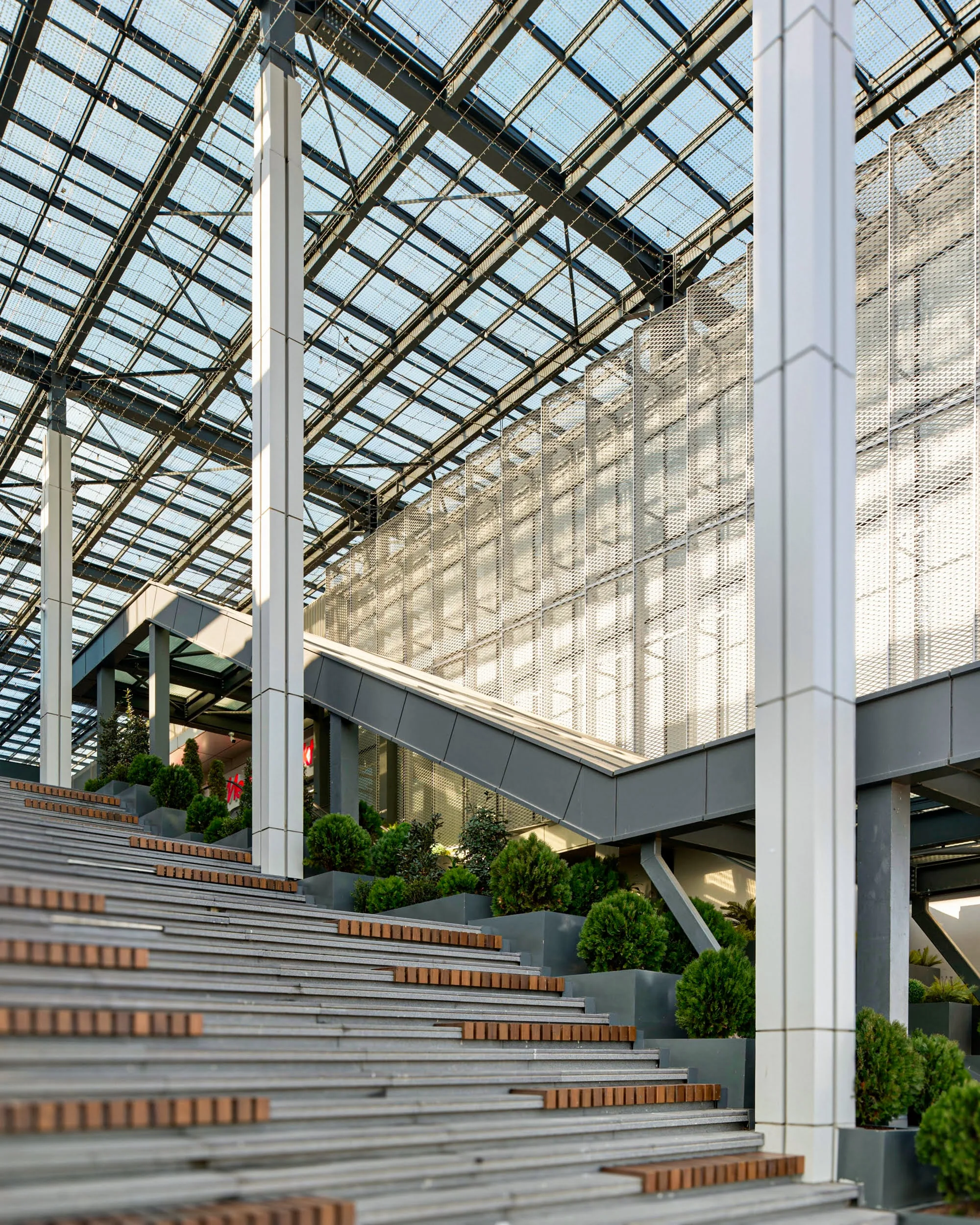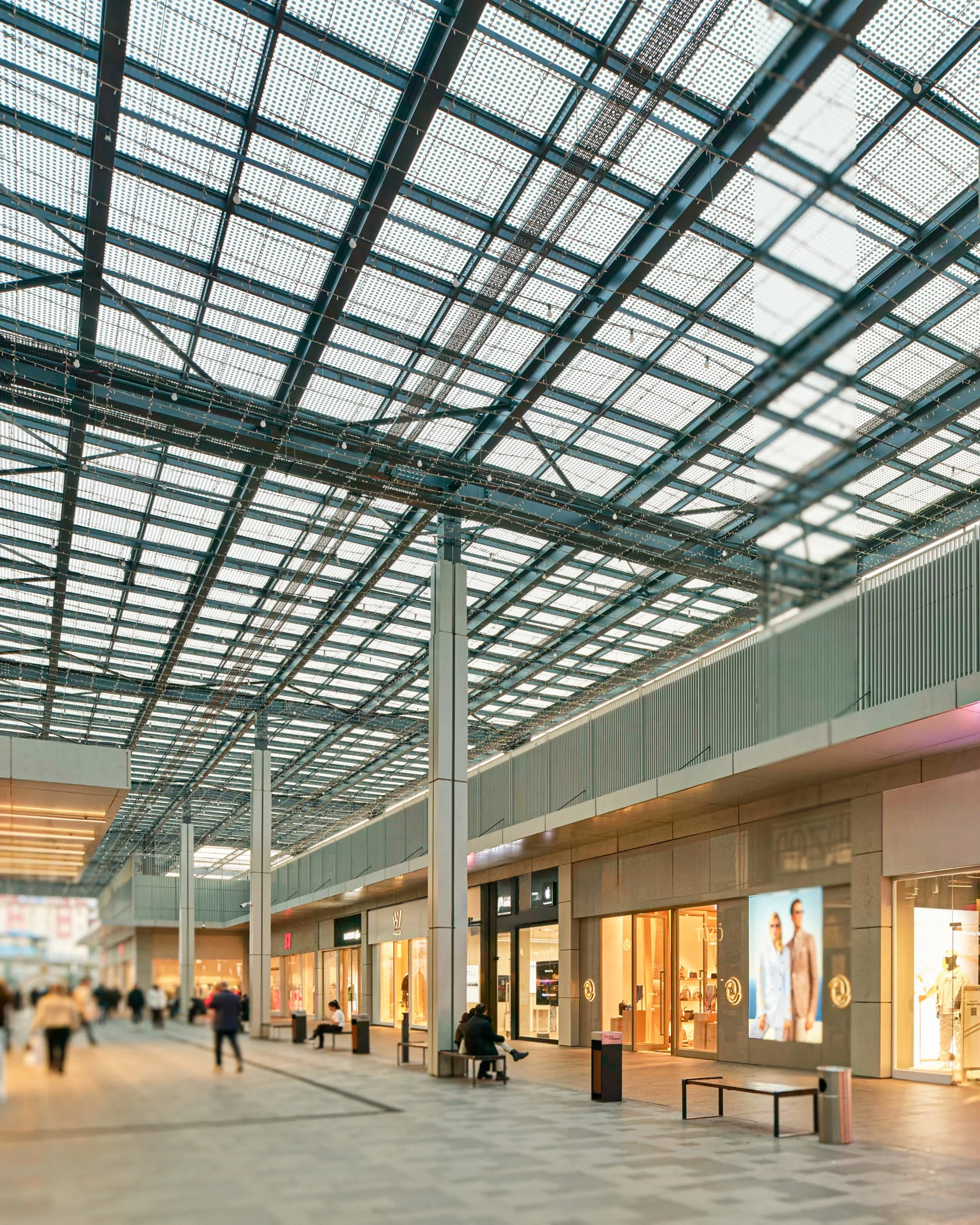 Çağdaş cephe malzemeleri ve şeffaf yüzeyler sayesinde iç-dış mekan ilişkisi güçlendirilmiş, alışveriş deneyimi ile birlikte kamusal etkileşim de teşvik edilmiştir.